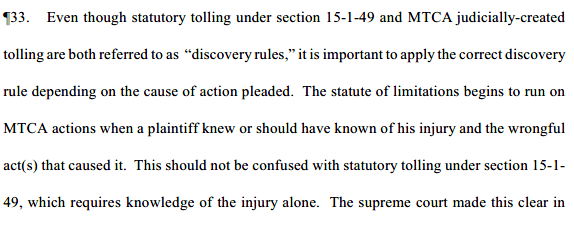 TAKE HEED, lest you fall victim to the distinction between “statutory tolling” and “MTCA tolling”: