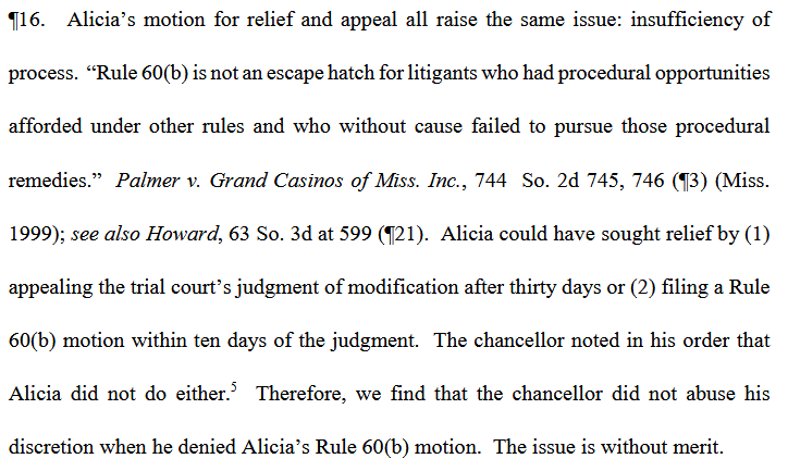 The Court of Appeals handed down one opinion today that is part MTCA decision on the open and obvious defense and part cautionary tale about the hazards of, and interplay among, Rules 54(b), 59(b), and 60(b) of the Mississippi Rules of Civil Procedure and Rule 3 of the Mississippi Rules of Appellate Procedure. Since I just had one opinion to wrestle with today I took a deeper dive into the timeline and the motions filed at the trial court level.